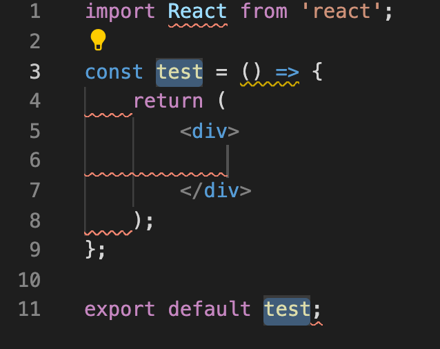 이렇게 아주 기본적인 리액트 functional component의 코드가 완성이 됩니다. 즉, snippet이라는 것은 반복적으로 사용하는 코드 패턴입니다. 그리고 스니펫은 완성된 후에 어떤 위치에 무엇을 입력하면 되는지 순서를 지정하여 tab을 통해 다음 것을 편하게 작성할 수 있도록 도와줍니다. 잘 활용한다면 반복 작업에선 생산성을 많이 높일 수 있습니다.