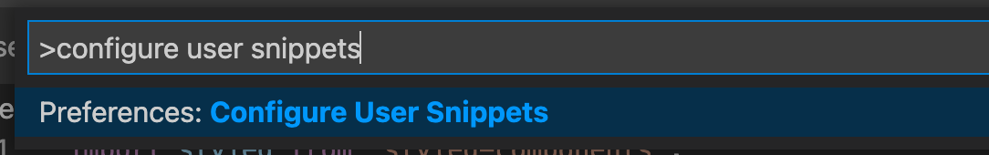 우선 command(ctrl) + shift + p 를 통해 메뉴 검색을 열고 Configure User Snippets를 찾아 선택해주세요.