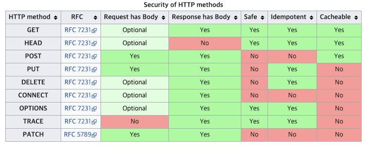 그럼 메소드는 무엇일까요. 메서드는 URI를 통해 선택한 리소스에 대해서 어떤 행위를 취할지에 대한 가이드라인입니다. 어떤 걸 사용한다고 해서 반드시 특정 행위를 보장하는 것은 아닙니다만(이는 프로그래머가 HTTP 메서드에 맞게끔 디자인을 잘해주어야 하는 부분입니다), 통신의 성질에 대해 엿볼 수 있는 힌트가 됩니다.
