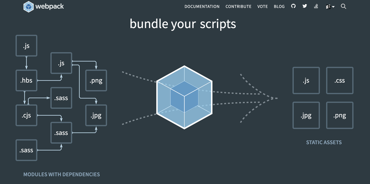 https://webpack.js.org/ webpack webpack is a module bundler. Its main purpose is to bundle JavaScript files for usage in a browser, yet it is also capable of transforming, bundling, or packaging just about any resource or asset. webpack.js.org 프론트, 즉 어떤 웹 서비스의 클라이언트 영역에 해당하는 부분을 제작하다 보면 소스 파일이 점점 증식하는 것을 체험할 수 있습니다. 간단한 페이지라면 하나의 html, js, css 파일로 끝낼 수 있겠지만 하나의 페이지 안에서도 각각의 부분을 컴포넌트로 쪼개서 작업하는 요즘..